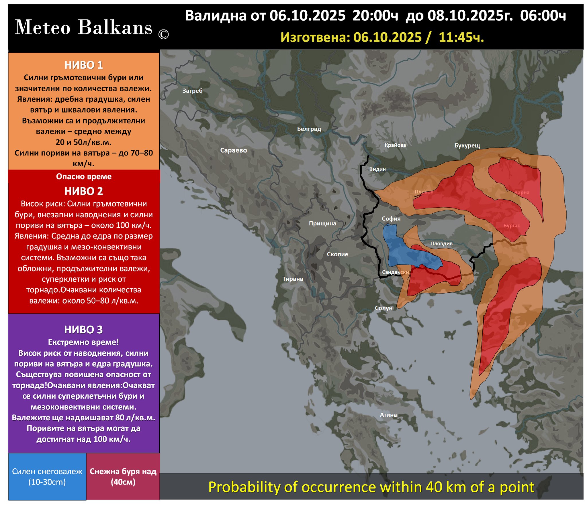 „Интензивните валежи ще се образуват заради по-топлата черноморска вода. Циклонът ще засмуква огромно количество влага, която ще се насочи към нашата страна. Очакваните валежи ще бъдат конвективни и стациониращи – подобни на тези от 3 октомври“, обясняват от Meteo Balkans.